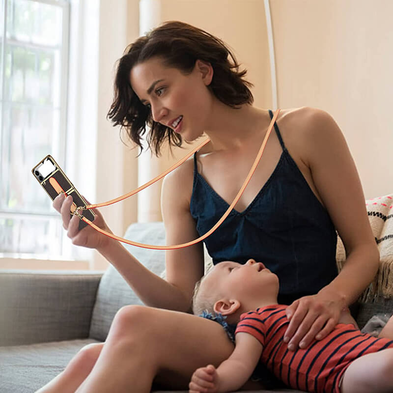 【Compatible】: Diseñado exclusivamente para Samsung Galaxy Z Flip 3/4 5G. Con correa de hombro desmontable y ajustable. Delgado y ligero diseñado, no es necesario quitar el caso cuando la carga inalámbrica.